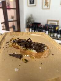 mollete casero relleno de abanico ibérico hecho a la brasa, mayonesa de hierbas aromáticas y pimientos verdes asados |